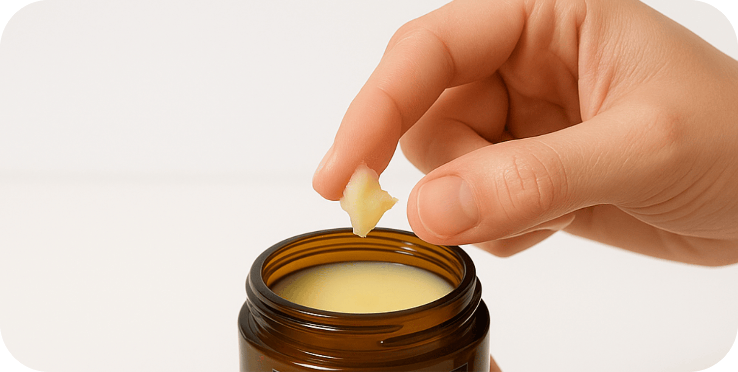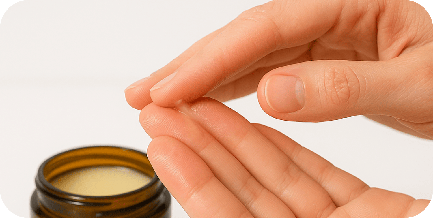 Take a pea-sized amount with clean fingers.