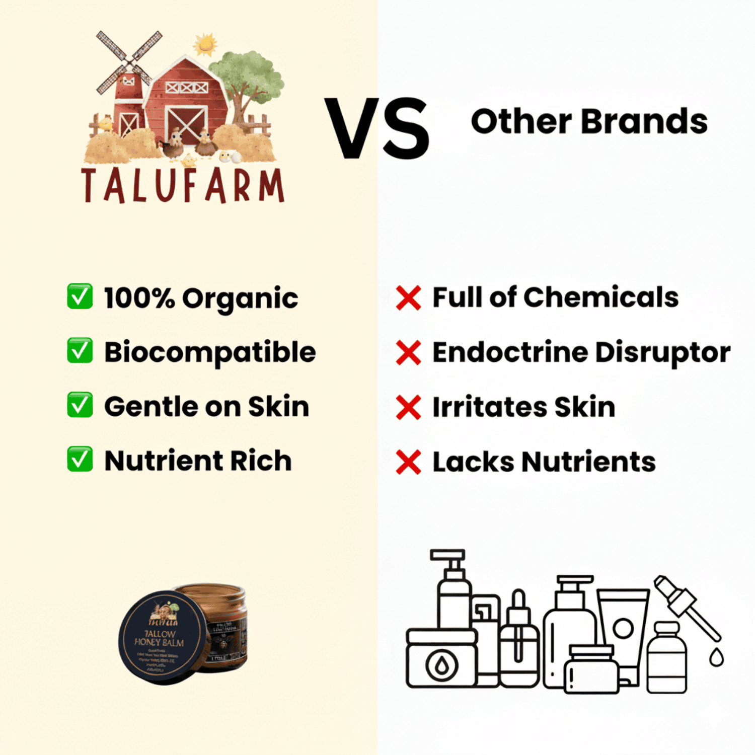 Forget dull, tired skin. Honey-Beef Tallow restores your natural radiance so you’ll feel confident with or without makeup.
